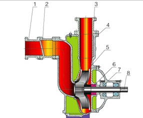 1進口接管 2進口單向閥 3出水接管 4泵體 5葉輪 6機械密封 7軸承座 8泵軸