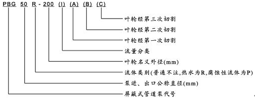 PBG系列管道式屏蔽泵型號意義: