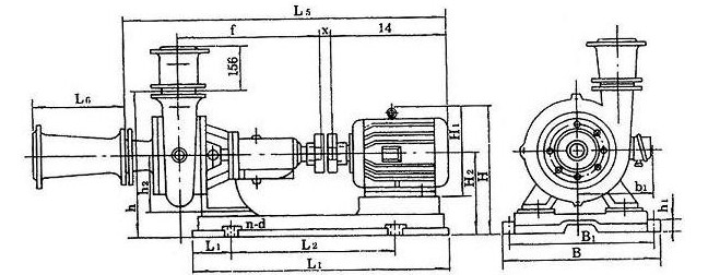 PWB型不銹鋼臥式排污泵安裝尺寸圖: