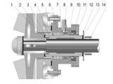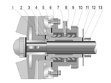 工作原理: K型及K1型動力密封主要由副葉輪(或副葉片)與停車密封(橡膠油封)組成。工作時由于副葉輪(或副葉片)旋轉(zhuǎn)產(chǎn)生的離心力使密封腔處于負(fù)壓狀態(tài),從而阻止液體向外泄漏,此時,停車密封不起作用。橡膠油封的唇口因負(fù)壓而松開,與軸套產(chǎn)生一定間隙,減小其之間的磨損,延長了使用壽命;停機(jī)時,由于副葉輪(或副葉片)停止旋轉(zhuǎn),密封腔由負(fù)壓轉(zhuǎn)為正壓,停車密封開始工作,橡膠油封的唇口在壓力作用下緊緊包住軸套,從而達(dá)到密封目的。若允許冷卻水滲入介質(zhì)內(nèi),可選用帶冷卻水K型動力密封,即可添加外冷卻水裝置,延長油封的使用壽命。該密封的油封采用氟橡膠制成,主要適用于輸送含固體顆粒的料漿、含雜質(zhì)的污水等腐蝕性介質(zhì)(帶冷卻水K型動力密封用的冷卻水為潔凈的自來水,壓力適宜在0.05Mpa以內(nèi))。 |