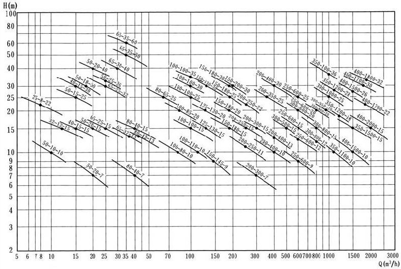 【單管不銹鋼液下排污泵YW型】性能型譜圖: