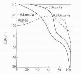 圖2-1是00Cr19Ni11、圖2-2是00Cr18Ni4Si4不銹鋼在硝酸中的腐蝕數據曲線。在硝酸中,含鉬的奧氏體不銹鋼是不耐蝕的,尤其在沸騰的硝酸中更是如此,因此,含鉬的奧氏體不銹鋼通常不在硝酸中使用。