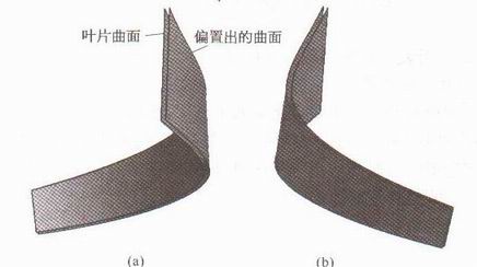 上文已經論述了葉片加厚的基本原理,此不敖述。這里使用"偏置曲面”命令,選擇葉片曲面進行曲面的偏置。偏置曲面的方式有“測量”“公式”、“函數”,“參考”,使用“函數”方式,可以更加逼近真實情況。我們采用較為簡便的方式,即均勻加厚2mm的方法,偏置出的曲面如圖8-27所示。