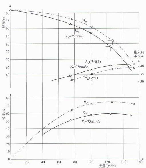 (1)性能曲線 如圖2-12所示為輸送清水黏性介質的曲線對照。