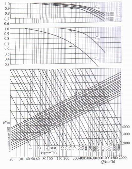 當被液體的粘度增大時,水利摩擦損失也隨之增大,QH曲線下移,即泵的流量和揚程均下降,但泵的關閉揚程幾乎不變,同時,泵的圓盤摩擦損失增加,泵的輸入功率增大,泵的效率急劇下降。