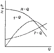 1.1 離心油泵的性能 揚(yáng)程-流量、軸功率-流量和效率-流量曲線表示離心油泵的水力性能,一般用只能采用實驗的方法才能得到性能,見圖1。本文試圖分析出*優(yōu)工況的滑移系數(shù)、水力效率、容積效率、機(jī)械效率和水力損失系數(shù)等參數(shù)。