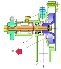 間接冷卻常采用靜環背部引入冷卻水結構,如圖1—25所示。也可采用密封腔外加冷卻顯著,話用于輸送高溫液體。