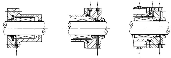 圖1--24沖洗冷卻機械密封裝置 圖1—25靜環背部引入冷卻水 圖1—26密封腔外加冷卻水套