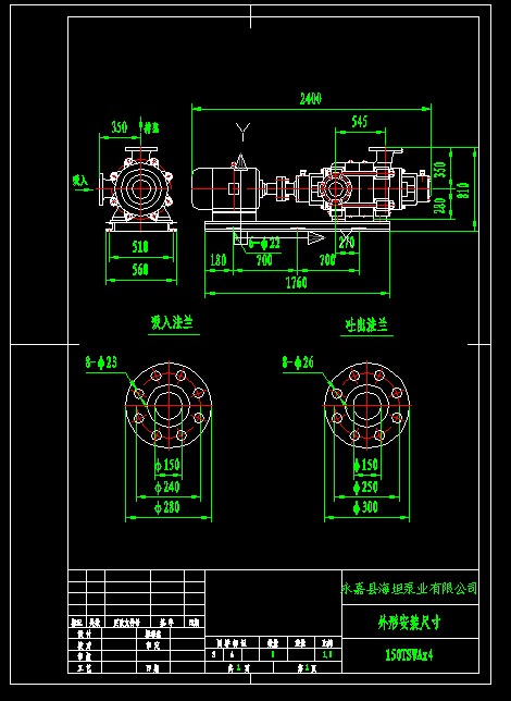 150TSWA×4臥式多級泵CAD尺寸圖