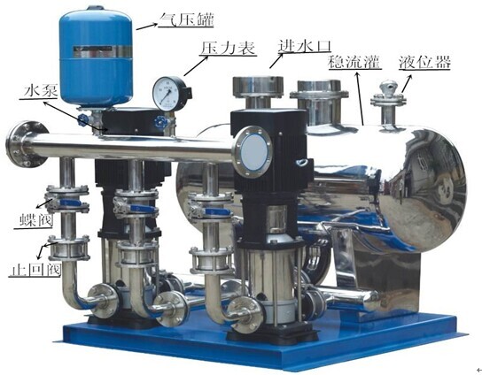 無負壓給水設備由氣壓罐、水泵及電控系統三部分組成,其突出產品的特色是,不需建造水塔,贊助小、占地少,布置靈活,建成投產快。采用水氣自動調節、自動運轉、節能與自來水自動并網,停電后仍可供水,調試后不需看管。廣泛用于企事業單位、住宅區及農村的生產、生活、辦公供水。適用于供水戶在5000戶以內,日供水量在3000m3以內場所,供水高度達100米以上。一般設在地面或地下室。有自來水的單位,使用無負壓給水設備可以調節高峰用水量,增加水壓,能在高峰用水時,滿足大面積用水和高樓層用.