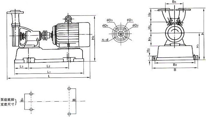 1W系列直連式單級旋渦泵安裝尺寸圖: