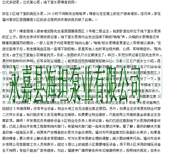 海坦公司指點注意選擇水泵地下室水泵噪音擾民